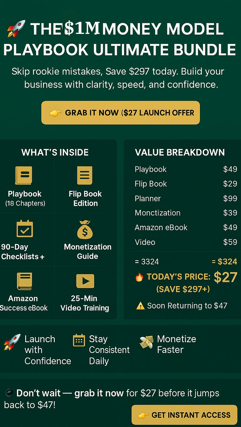 This book gives you the exact blueprint. Inside, you’ll not only discover the 8 proven $1M business models, but you’ll also get a Flip Book edition, practical checklists, a monetization map, and a 90-day planner so you can stop reading and start building.